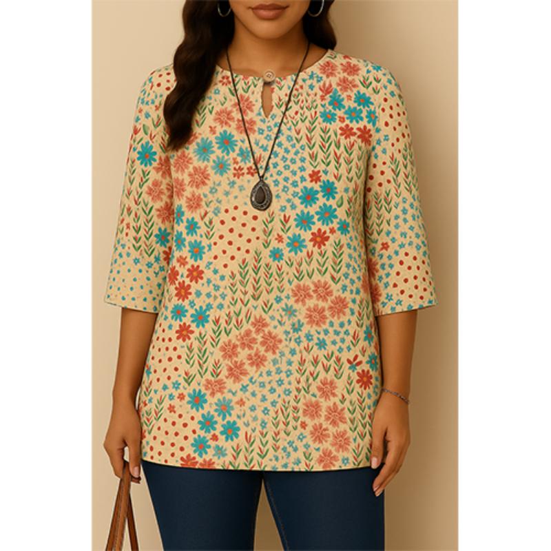 Fashion, for Women, Daily Wear, Long Sleeves, Neck with Flower Print, Loose, All Matches, Flower Blouse