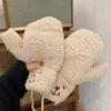 Winter Lamb Fleece Embroidered Smiley Bear Gloves with Neck Strap, Cute, Fleece-Lined, Thickened, Warm, and Cold-Resistant