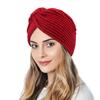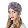 Women's Solid Color Winter Knitted Turban Hat Imitation Cashmere Cross Twisted Hat for Women Bohemian Style Hijab Caps