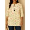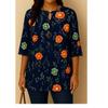Casual Blouse, Vintage Style, For Women, Floral Print, O Neck, Three Tribal Sleeves, Elegant Loose Top