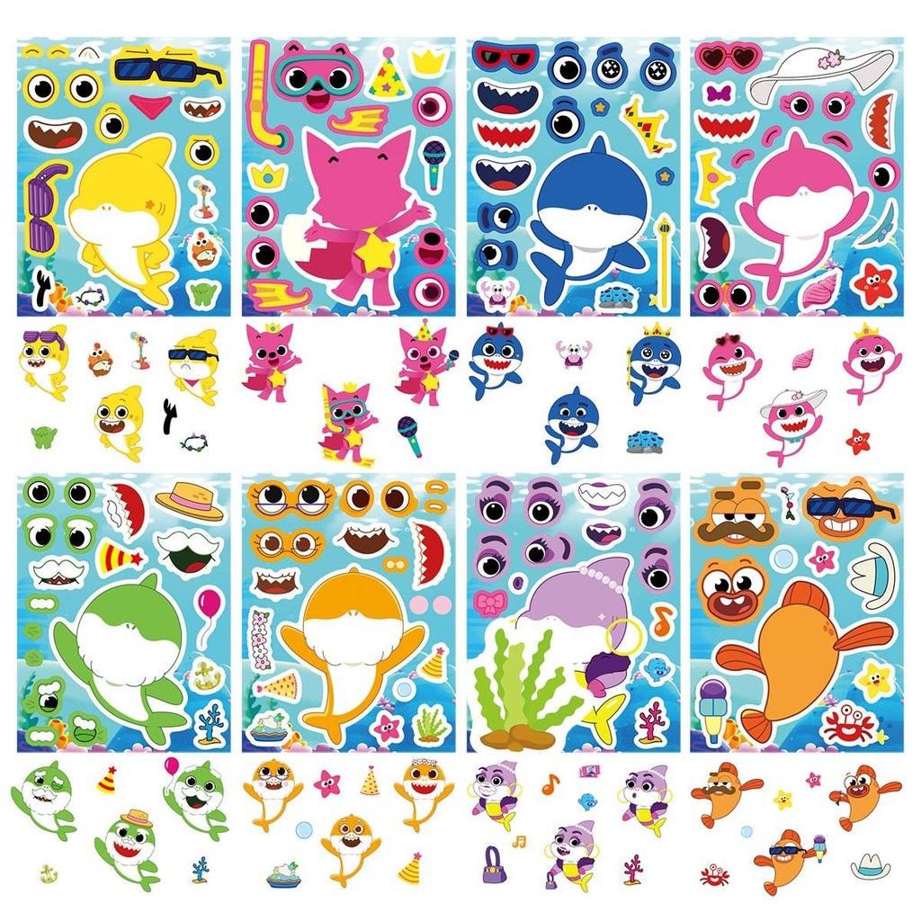 Dive into creative fun with this 8-piece Shark Make a Face sticker set! These quirky cartoon shark stickers feature detachable facial parts like eyes, mouths, and accessories, allowing you to mix and match endless hilarious expressions. Perfect for DIY enthusiasts, these puzzle-style decals let you design your own fearsome or friendly shark characters.