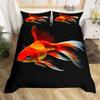 Goldfish Bedding Set Fantasy Yin Yang Fish Duvet Covet Cherry Blossom Flowers Theme Blue Sea Wave Breathable Bedding Set