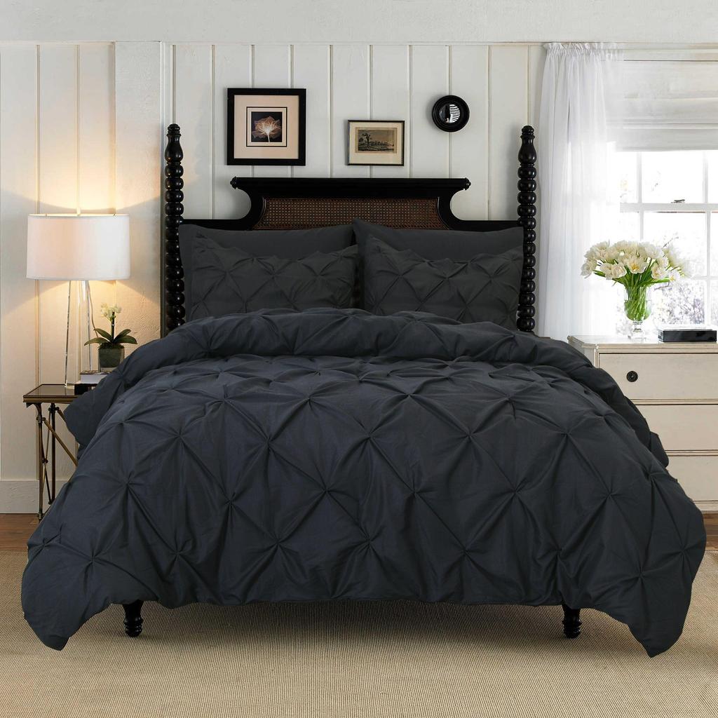 Bavlněná ložní souprava Elegantní pohodlí Skládaný vzor s pintucky 3dílná sada povlaku na přikrývku Obsahuje rohové vázací pásky