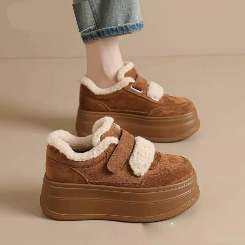 Leather thick heightened sole snow boots women's new warm cotton shoes in autumn and winter are not tired women's shoes velvet casual board shoes