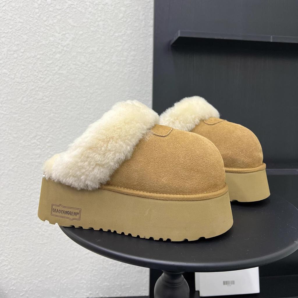 Leather platform snow boots women's winter new velvet thickened large cotton shoes one pedal bread cotton slippers