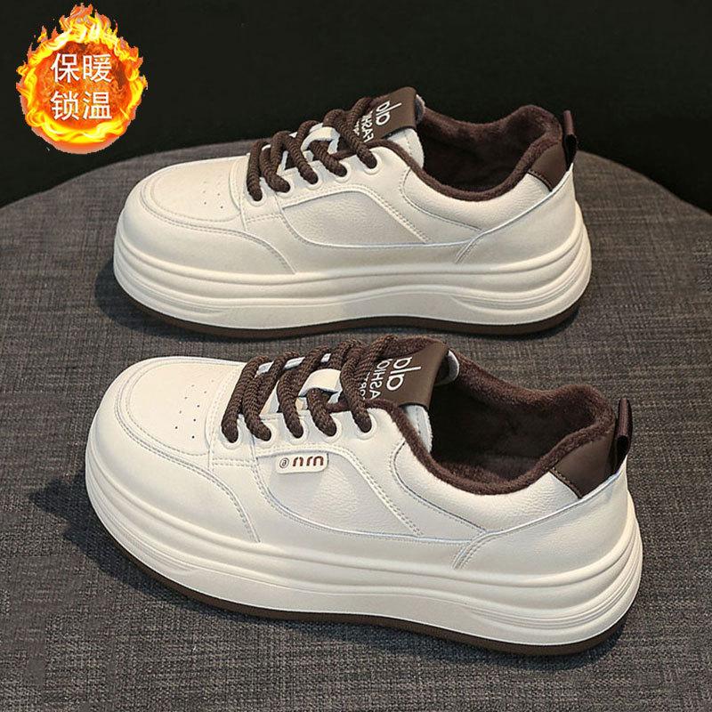 Leather muffin thick-soled little white shoes women's shoes autumn and winter new velvet warm cotton shoes soft-soled casual board shoes