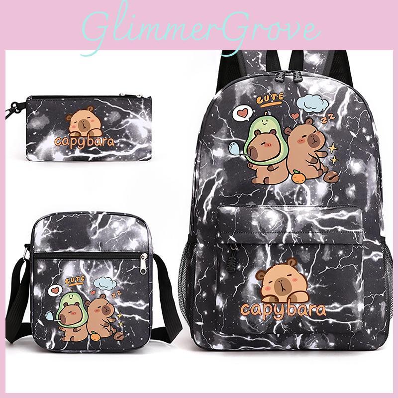 Capybara Pattern Student Backpack And Trio Set With Wearresistant Oxford Fabric For Education