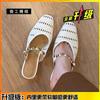 Sheepskin version~ retro square head hollow bag head sandals women's versatile shallow mouth breathable casual shoes single shoes