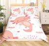 Cartoon Pink Axolotl Floral Duvet Cover King Size 3D Cute Salamander Bedding Set Suitable For Boys Girls Room Decoration 3 Pcs