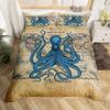 Sada povlečení Octopus Chapadla Chobotnice Ložní prádlo Námořní Oceánově Modrá Lněná ložní souprava Mořský Námořní Téma Přikrývka Plná Velikost