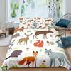 Cute Forest Animals Theme Duvet Cover Sets King Size Fox Deer Rabbit Owl Hedgehog Flowers Comforter Set Bedding Cover Set