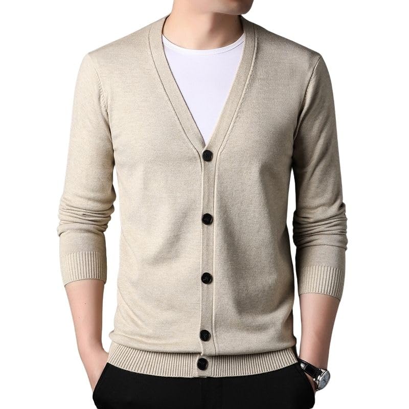 This versatile cardigan blends seamlessly with both formal and casual office attire. Its slim silhouette and solid color design allow for versatile styling, regardless of the occasion. Its simplicity highlights its high quality, making it a reliable piece.
