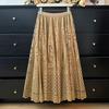 Women Spring Fall High Waist All Match Solid Color Flowers Mesh Pleated Skirt