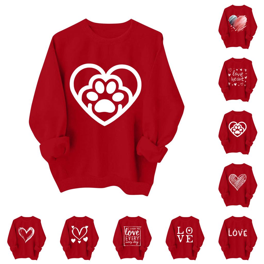 Dámská módní ležérní mikina s dlouhým rukávem s potiskem srdcí na Valentýna