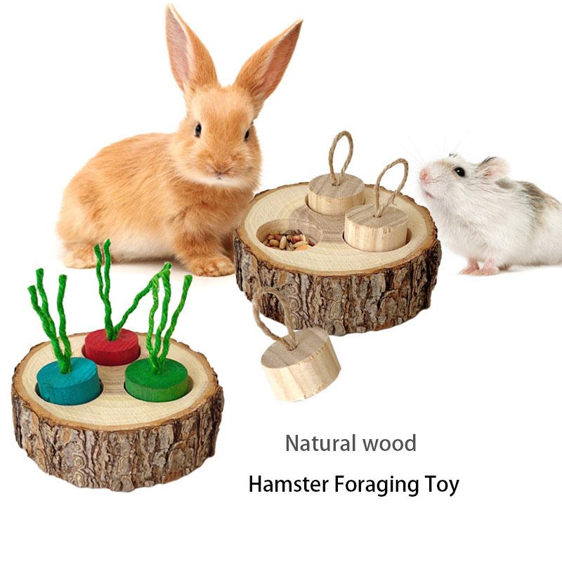 Wooden Hamster Toy Hamster Golden Bear Foraging Gnawing Grinding Teeth Wood Bite String Snack Box Hamster Landscaping Supplies