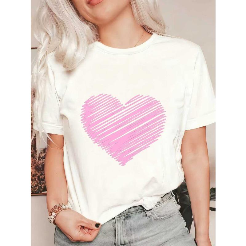 Oversized T Shirt Black Pink Heart Print Casual Wear For Women Summer Outfit Street Style Fashion Top
