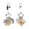 New Golden Sunflower Copper Charms Lucky Stars Beads Fit Bracelets & Necklaces Sun Moon Diamond Pendant Jewelry Diy