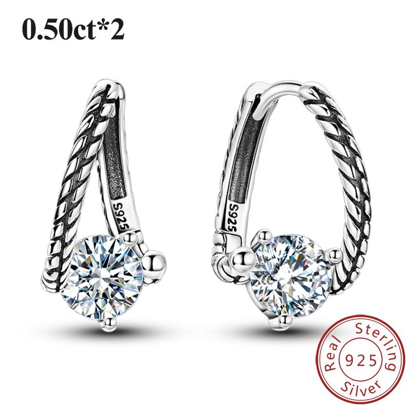 Total 1.0Ct Moissanite Hoop Earring Real Copper Snake Bone Earring For Women Wedding Engagement Party Fine Jewelry