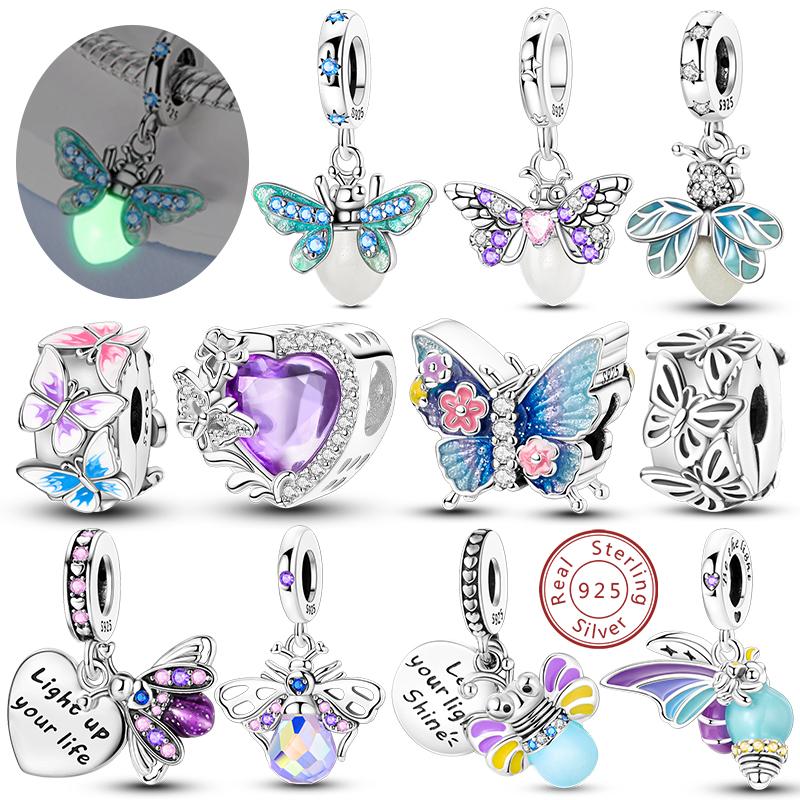 Copper Charms Beads Pendant Luminous Firefly Butterfly Charms Fit Original Bracelet Women Diy Jewelry Making Gifts