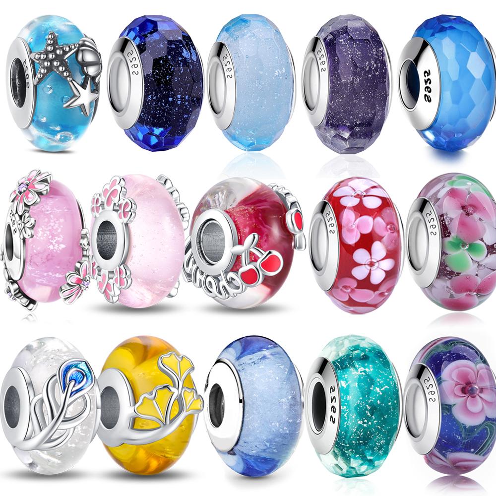 Romantic Copper Blue Ocean Murano Charm Fit Diy Bracelet Faceted Round Murano Original Women Necklace Jewelry Gift