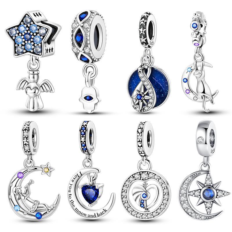 Copper Beaded Pendant Shiny Blue Zircon Love Heart Star Original 3Mm Bracelet Women Fine Jewelry