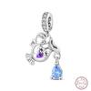 Copper Beaded Pendant Blue Shiny Zircon Suitable Original 3Mm Bracelet Women Fine Jewelry