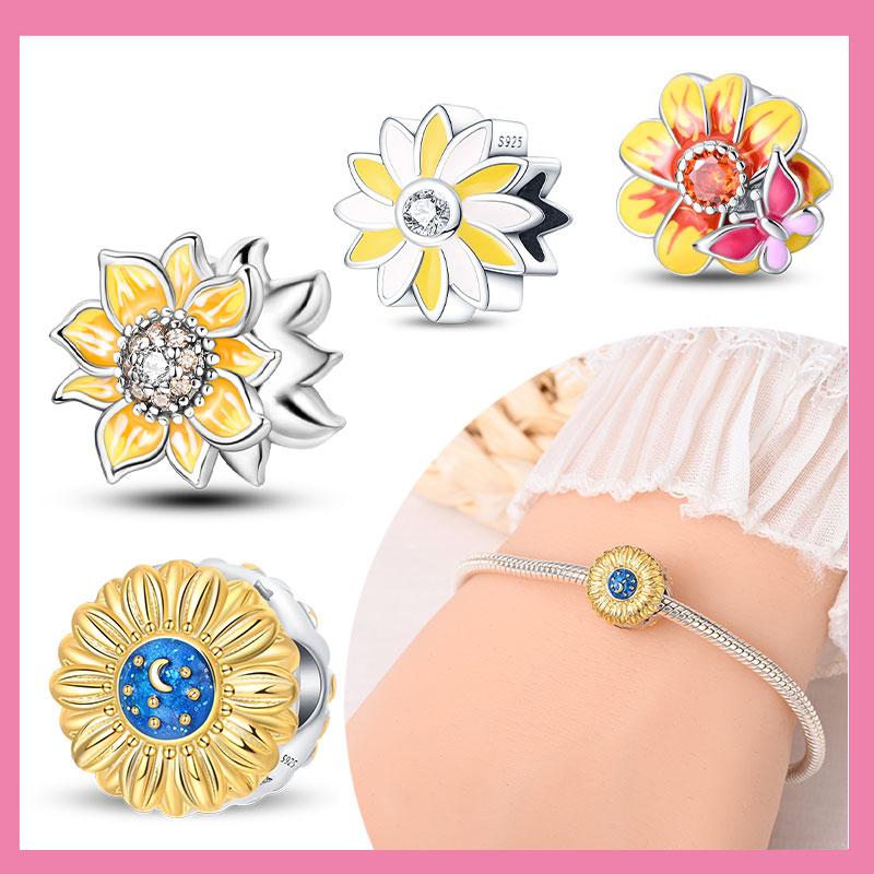 Copper Bouquet Romantic Flower Sunflower Chrysanthemum Charm Beads Suitable Original Bracelet Diy Gifts Jewelry