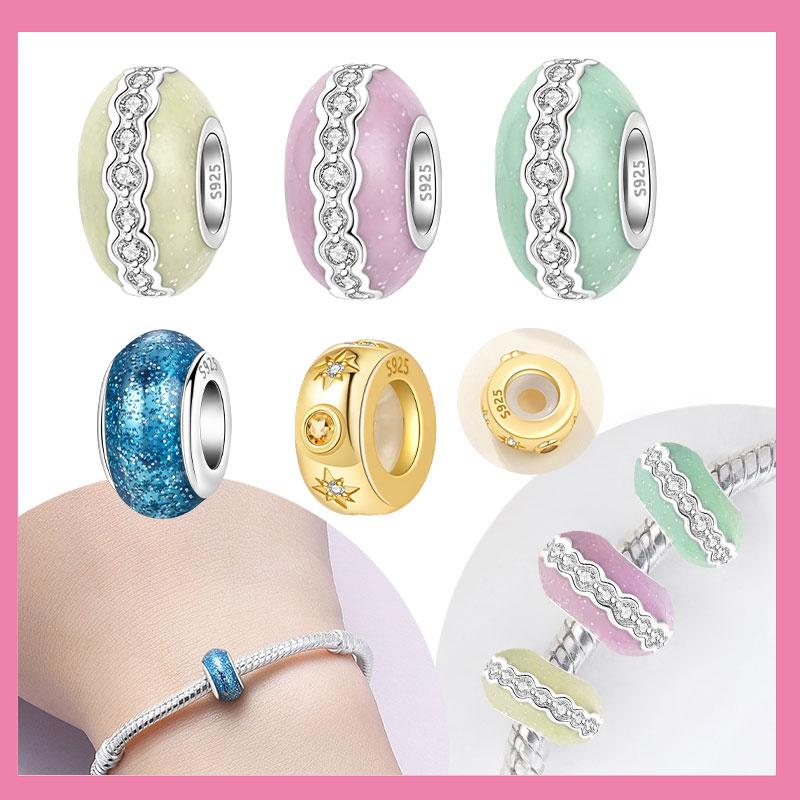 Copper Colorful Colors Charms Beads Pendant Star Moon Isolation Charm For Original Bracelet Woman Girl Jewelry