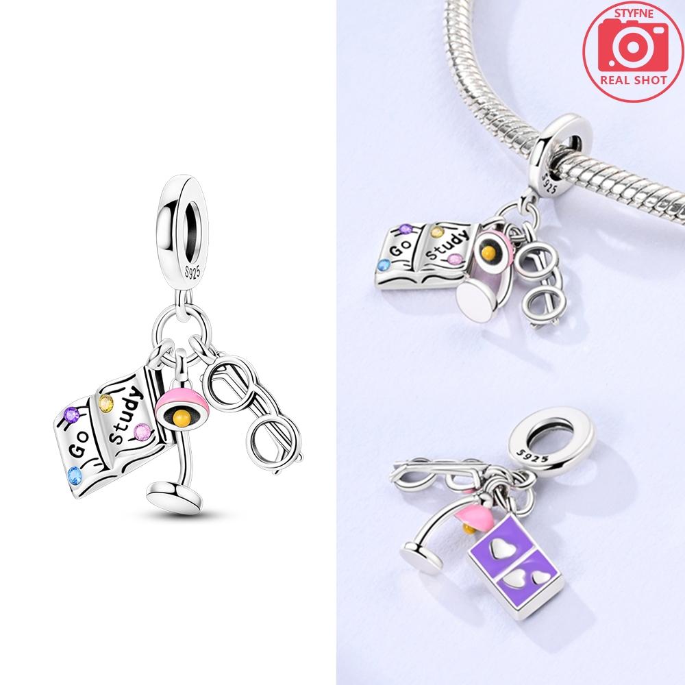 Charms Plata Colored Book Desk Lamp Glasses Pendants Fit Original Bracelets Charms For Women Jewelry Diy Making Gifts