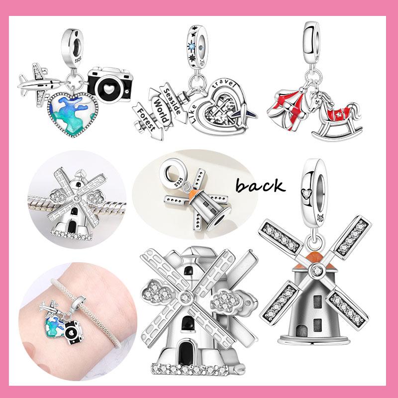 Copper Amusement Park Trojan Dutch Windmill Charms Beads Pendant For Original Bracelet Woman Girl Jewelry