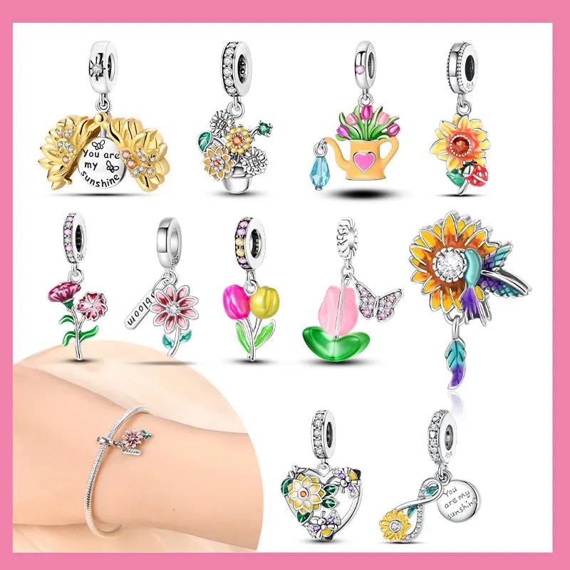 Copper Tulips Sunflowers Carnations Beads Charms Fit Diy Original Bracelets Necklaces For Women Jewelry Gift