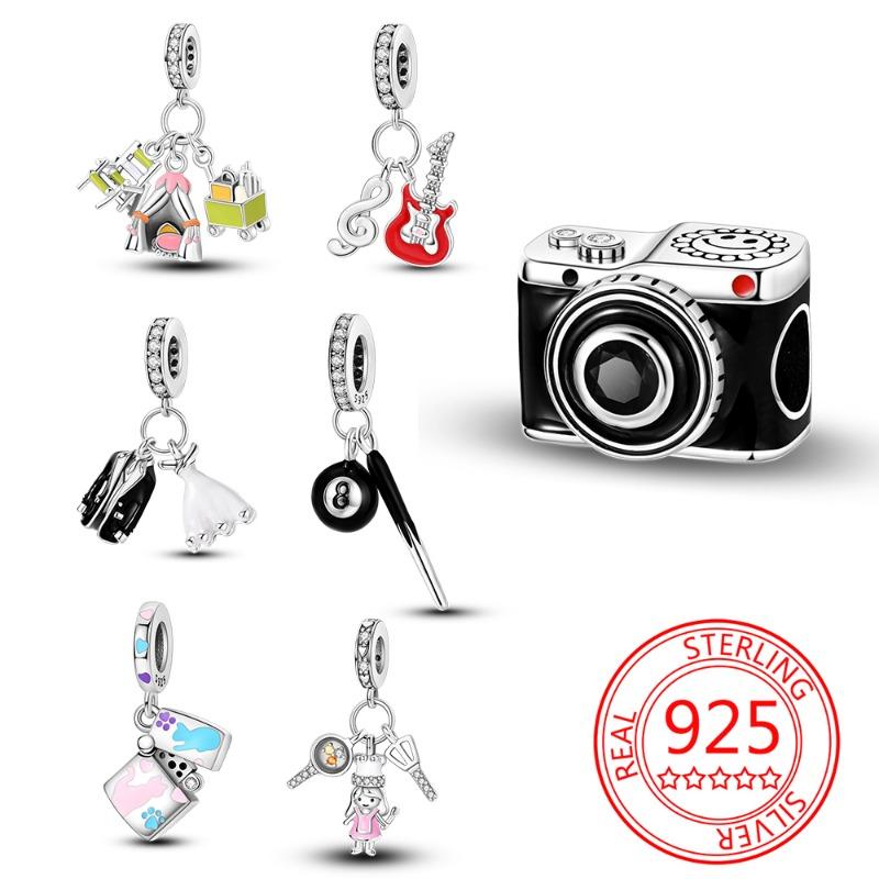 Copper Black Camera Guitar Charm Pendant Beads Fit Charms Copper Original Bracelet For Women Jewelry