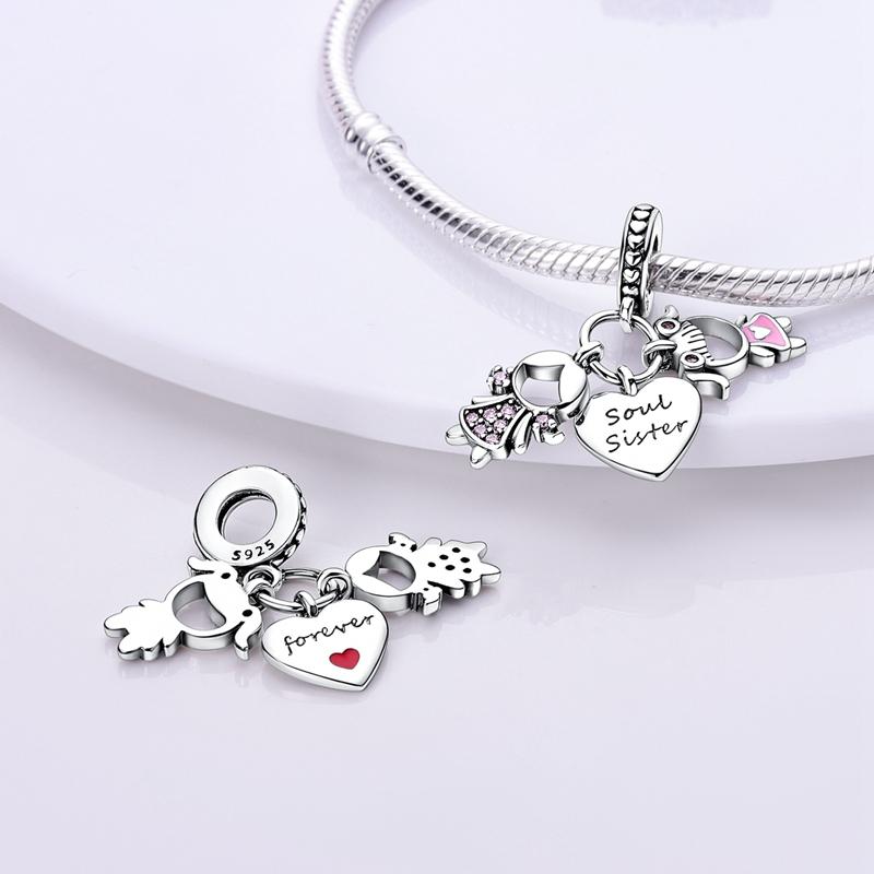 Copper Soul Sister Best Friend Love Beads Charms Pendant Fit Original Mula Bracelet Necklace Women Diy Jewelery