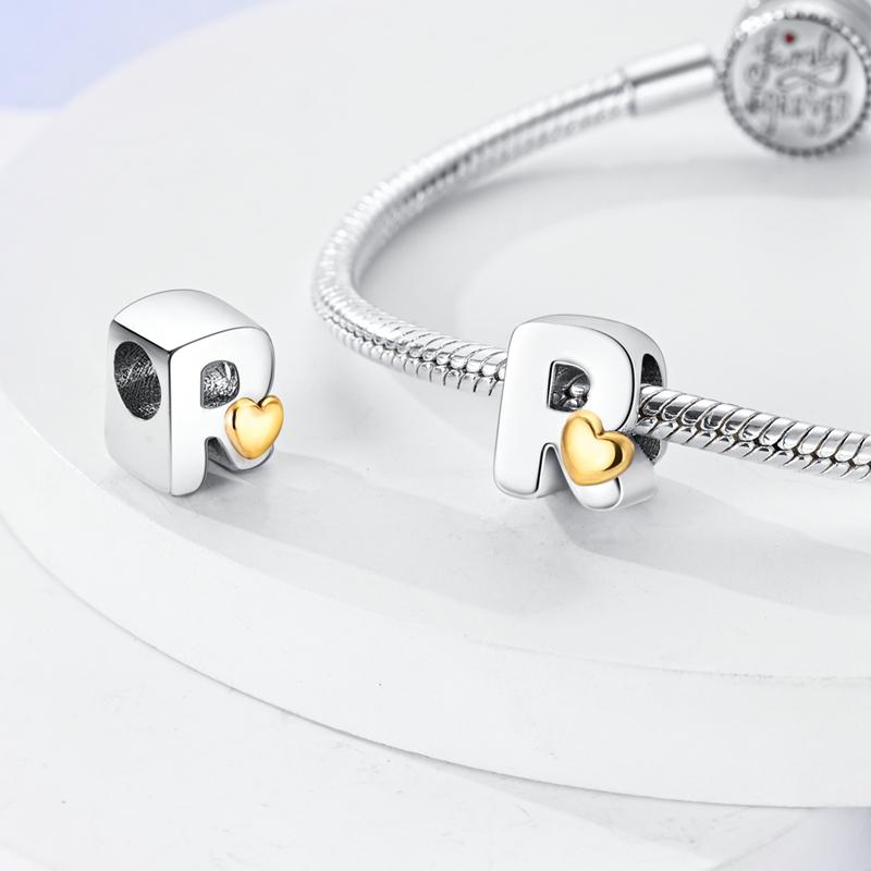 Hodí se na originální náramek DIY přívěsky s abecedou A-Z Korálek Měď Zirkon Cubic Zirconia Dopis lásky Visací přívěsek Šperky Dárek