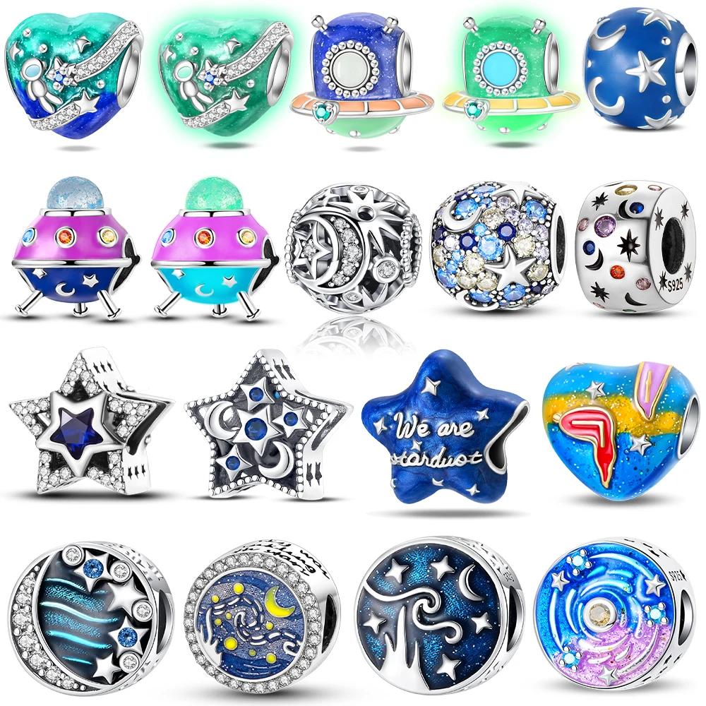 Exquisite Original Beautiful Blue Star Spaceship Heart Charms Copper Beads Fit Bracelet Women Jewelry Diy Fine Gift