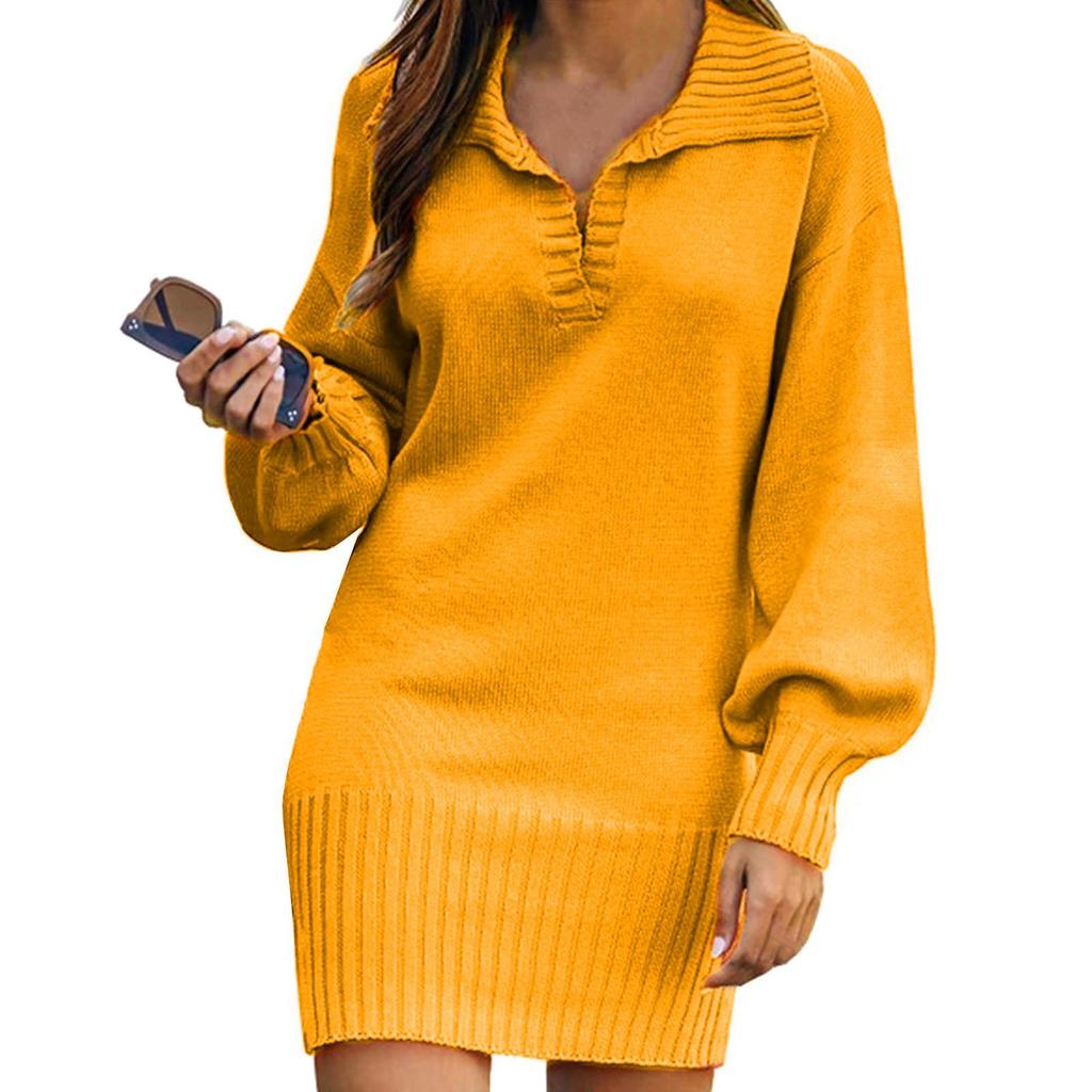 Women's Jumper Dress Lapel Lapel Sleeve Knitted Solid Long Dress