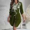 Dámské volné šaty s výstřihem do V a dlouhým rukávem, potisk, pracovní košilové šaty