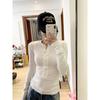 White bottoming shirt women's spring new single-breasted front shoulder slim-fitting Spice Girl long-sleeved T-shirt top trendy