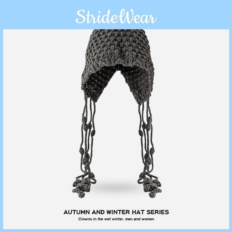 Style: knit, beanie with ear flaps, embroidered design