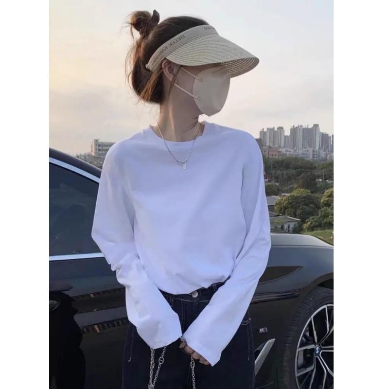 Pure cotton simple and versatile top women's spring German velvet warm long-sleeved T-shirt with basic bottoming shirt tide