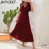 BITCED V-Neck High-Waisted Long Dress Short-Sleeve Plus Size Dress