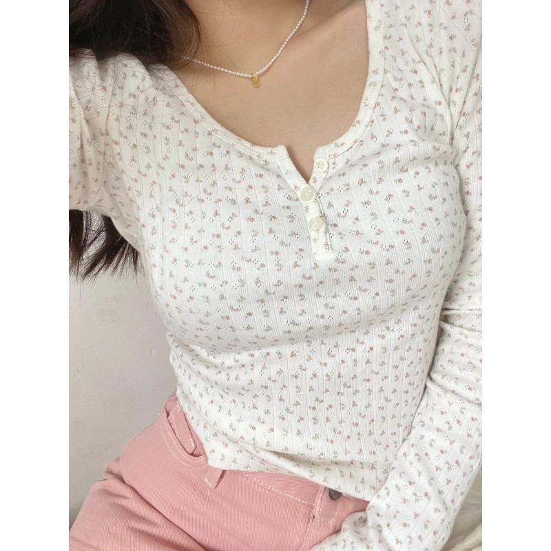 Pure desire wind collar small floral button-up shoulder long-sleeved shirt women's top autumn slim-fitting and thin age-reducing bm bottoming shirt
