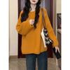 Lazy wind large size knitted sweater women's orange white top early spring autumn and winter age-reducing fashion bottoming shirt