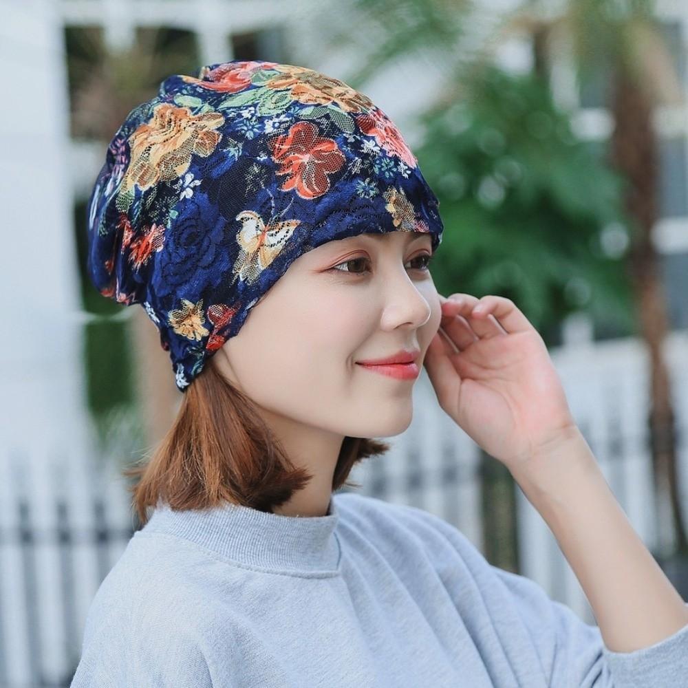 Floral Pattern Floral Lace Beanie Comfortable Stretch Slouchy Turban Chemo Cap Head Covering