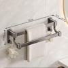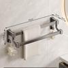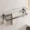 Hliníkový dvojitý držák na ručníky bez vrtání - Nástěnná koupelnová tyč