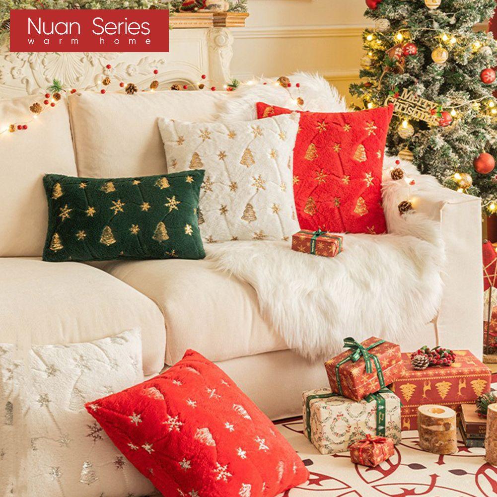 1 ks Povlak na polštář Nuan Series Módní vánoční styl Vyšívaný zlatou nití Povlak na polštář pro pohovku Obývací pokoj Ložnice Domácí dekorace