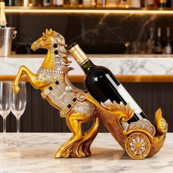Its dual-purpose design elegantly displays a standard 750ml wine bottle while serving as a fashionable horse sculpture, perfect for kitchen countertops, bars, or dining room shelves.