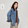 INMAN Women's Retro Stand Collar Short Denim Bomber Jacket