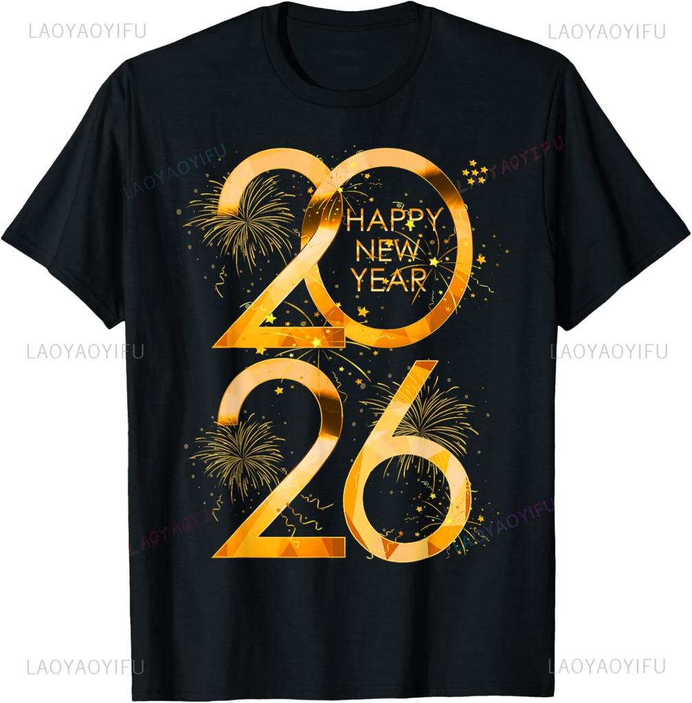 Happy New Year Party Supplies 2026 Family Matching T-Shirt Unisex Summer Streetwear Tops Streetwear Clothing Printed T-shirt