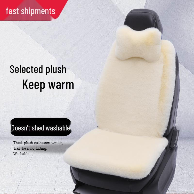 Winter Rabbit Fur Wool Heated Car Seat Cushion - Non-slip, Warm, for Single Seat with Small Waist Support
